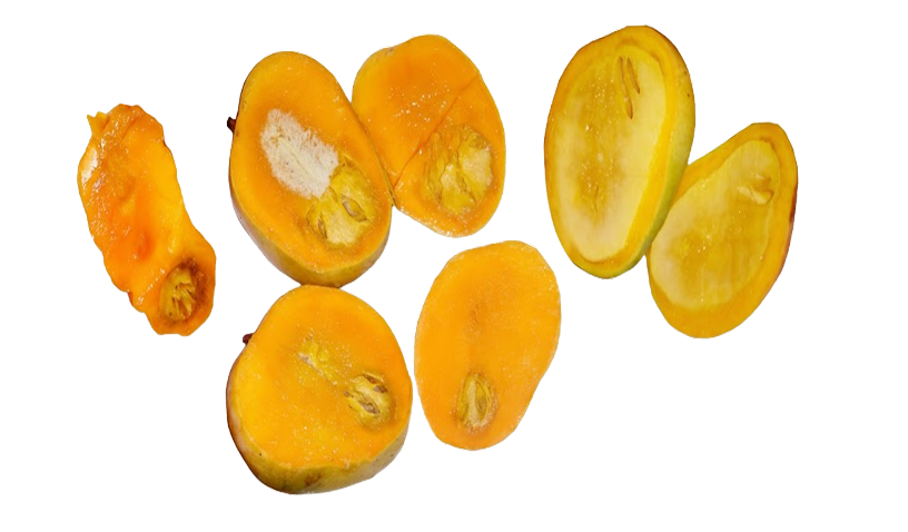 Alphonso mangoes may occasionally be affected by a natural physiological disorder known as spongy tissue. This condition results in internal pulp breakdown appearing as pale yellow or white cork-like areas—sometimes with air pockets—near the seed. The taste of affected portions may be undesirable. Interestingly, these mangoes show no visible signs from the outside; the issue is only noticeable once cut open.